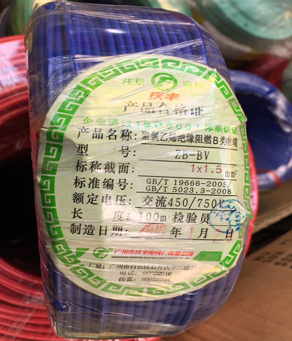 廣州慶豐電纜ZB-BVV阻燃B級家裝電線